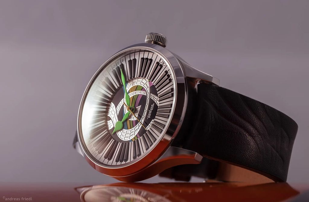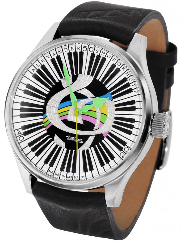"Barbara's avant-garde music fascinated me and motivated me to create a watch dedicated to music", this is how Alexander Shorokov himself described the Barbara model at the BaselWorld 2015 world watch exhibition. Organ keys fill the perimeter of the dial and a violin key dominates the centre against a vivid, colourful background. The unique design of this watch also impressed the international jury of the prestigious German Design Award, which awarded it a special prize.