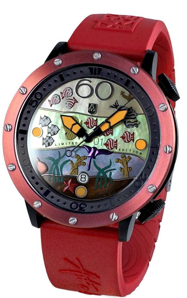 On a visit to Flensburg, Alexander Shorokhov was inspired by an unforgettable evening that began with a relaxed stroll along the waterfront, where the idyllic and peaceful atmosphere left a lasting impression on him. The walk was perfectly rounded off at a cosy local seafood restaurant, whose culinary delights completed the evening's magic. This exceptional experience gave birth to the visionary idea of designing a dial with a fascinating underwater world.