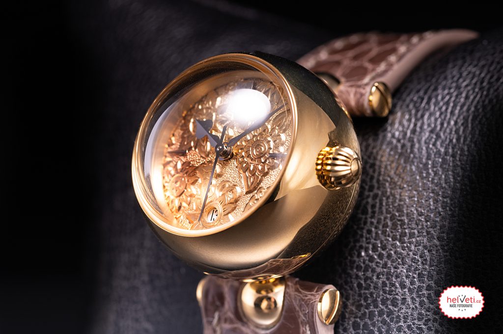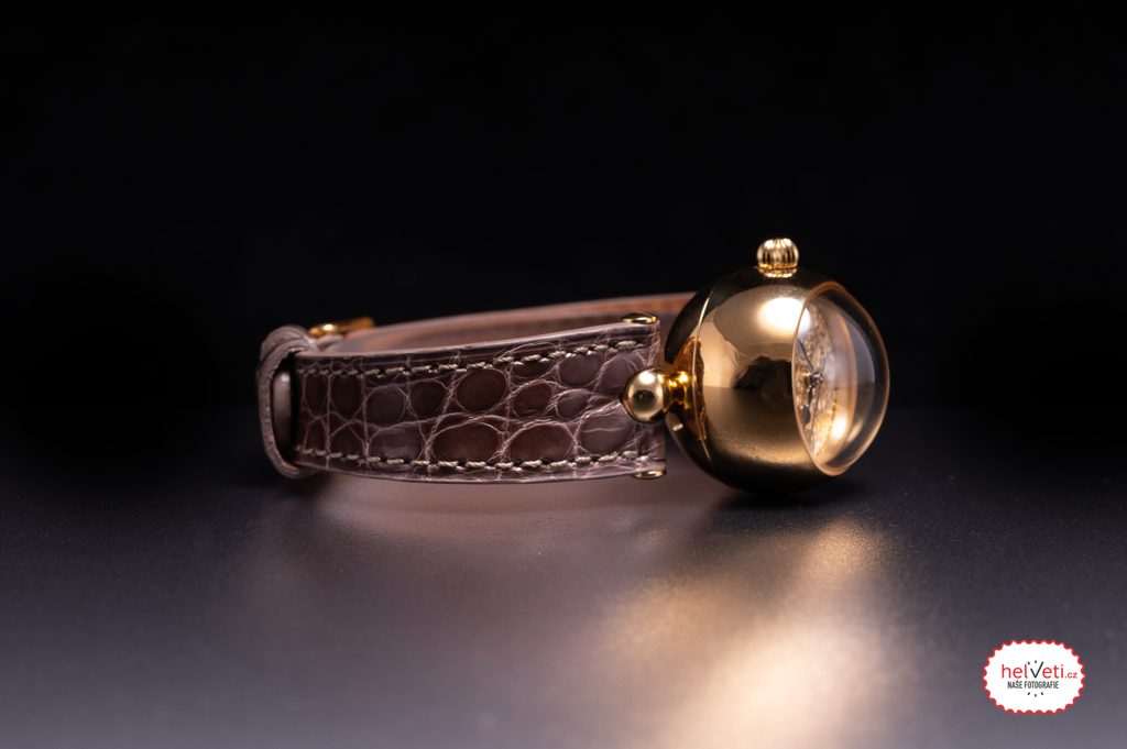 Women's Alexander Shorokhoff Shar AS.SH05-1Y watch belongs to the Avantgarde model series. It is the first absolutely round watch from Alexander Shorokhoff. The spherical shape is close to perfection - without edges and corners, but also without beginning and end. This form has fascinated not only many artists and engineers to new art objects or technical discoveries, but also Alexander Shorokhoff. The next successor of his new wristwatch "Shar", which means "sphere" in Russian, shines in a majestic shiny gold case.