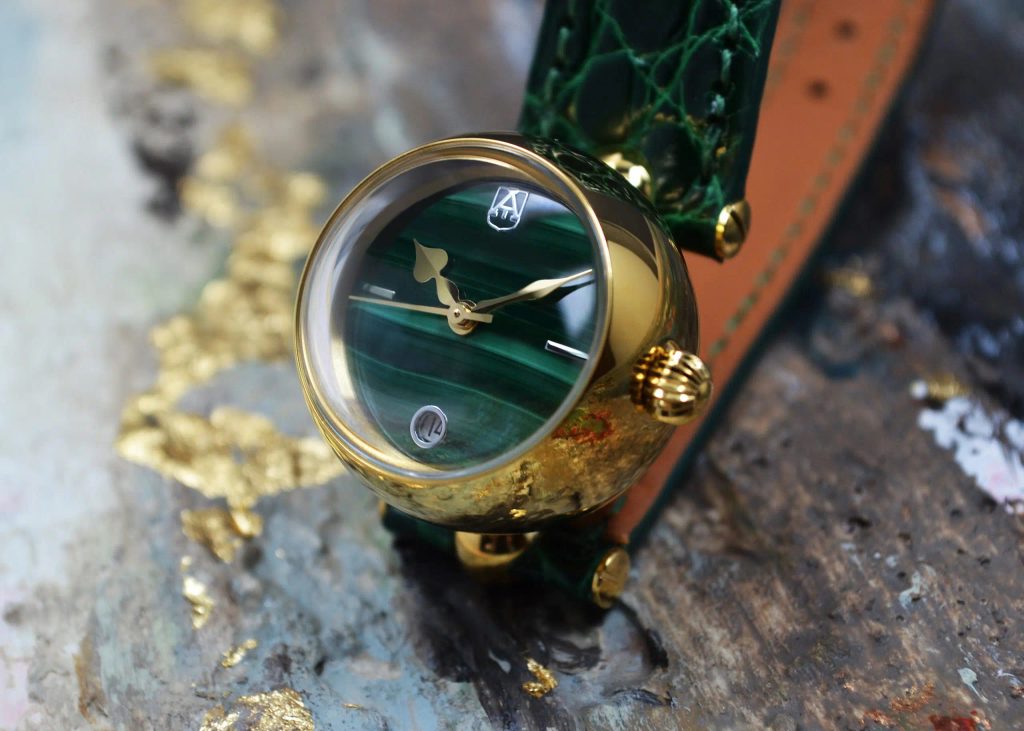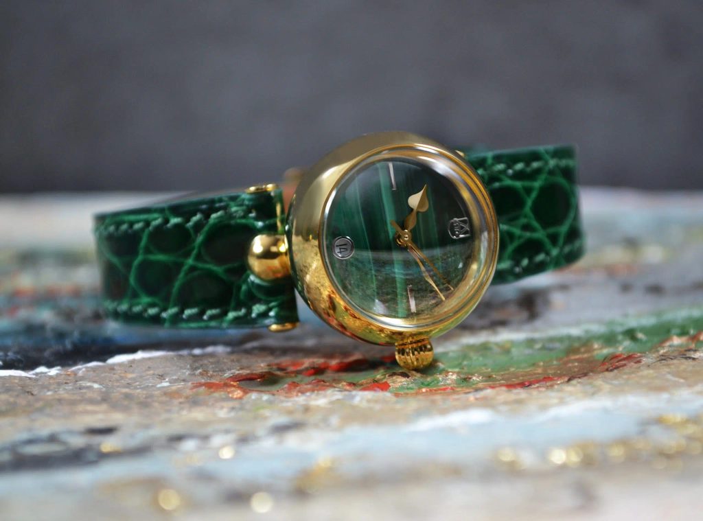 Inside the Alexander Shorokhoff Shar AS.SH05-5 watch works a Swiss mechanical movement ETA.2671 with automatic winding. The movement rotor is hand engraved. The dial made of genuine malachite underlines the gold and green colour motif. The watch is limited to only 30 pieces worldwide.
