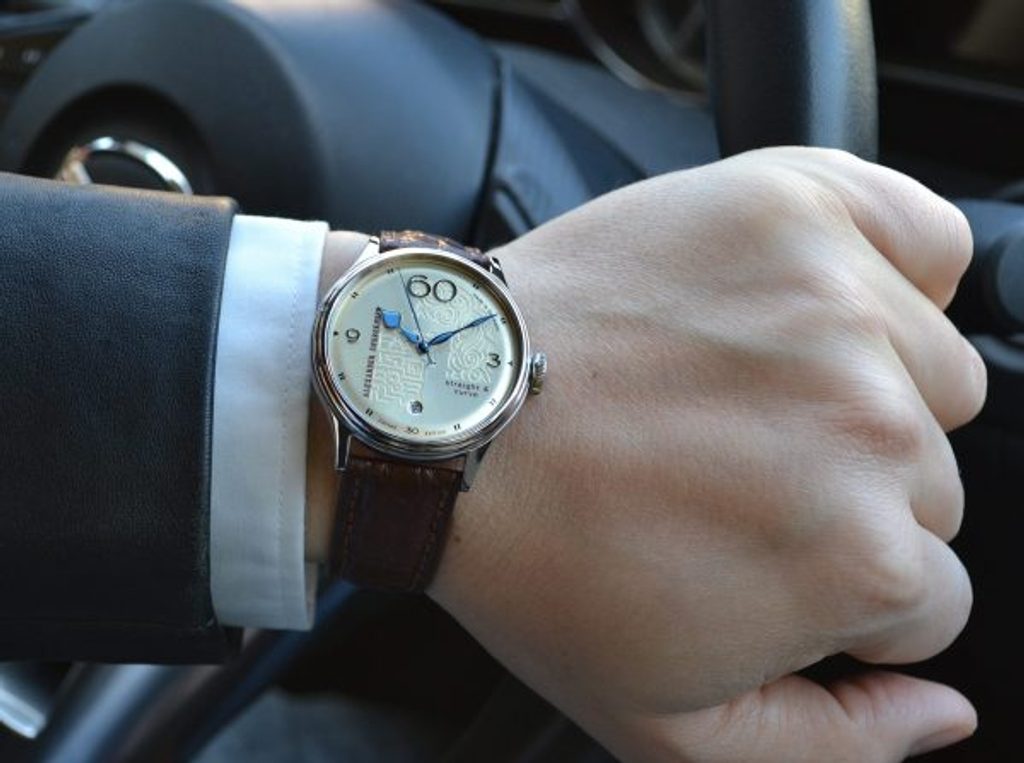 The elegant men's Alexander Shorokhoff Straight & Curve AS.V7-SC2 watch belongs to the Vintage series. Alexander Shorokhov goes his own way in the field of watch design, combining two opposites at once. Because he believes "The straight line is brilliant, but the curve is divine!". Opposites, yet mutually enriching.