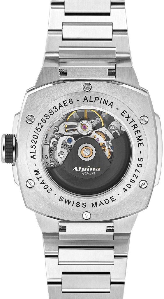 The steel case houses the AL-520 Swiss mechanical automatic movement (based on the Sellita SW200) with 26 jewels, which operates at a frequency of 28,800 semi-frequencies per hour. The movement's operation can be observed thanks to the skeletonization of the dial and also through the transparent dial. The perfectly clear dial is protected by a sapphire crystal, which is highly resistant to scratches. The anti-reflective coating then ensures excellent legibility even in the harsh sunlight.
