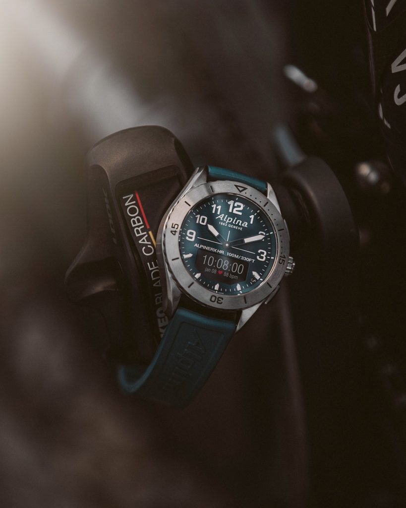 This model also has an integrated GPS module for GPS route recording. All available functions can be controlled via the crown and side buttons, but now also via the AMOLED touch screen. There is also an optical sensor for heart rate measurement. This makes it possible to monitor parameters such as hydration, VO2 Max, or Cardio Fitness Index. The watch is also compatible with the Alpina chest strap designed to measure heart rate (can be purchased separately). The weather forecast function is also handy.