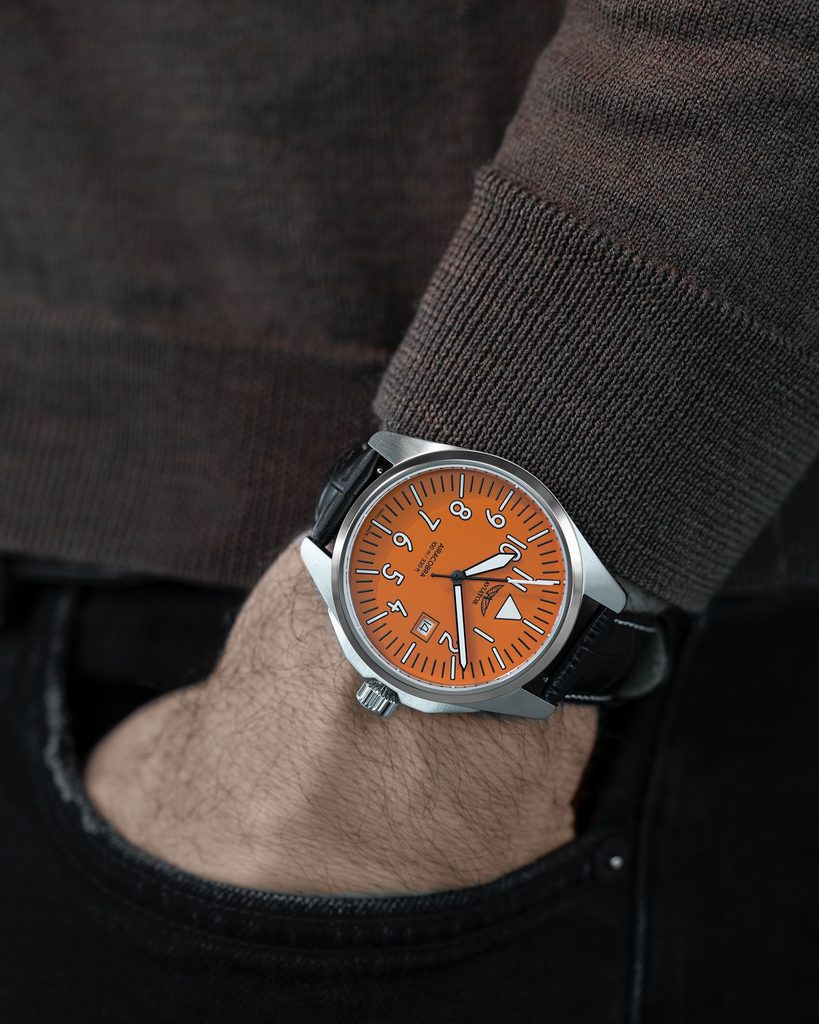 Designing each unique pilot's watch at the research and development facility inside the control tower of the regional airport in Jura, Switzerland, the staff looked to the heroes of the past, the dreamers of today and the innovators of tomorrow to organically combine the spirit of aviation in function and design. Aviator not only takes inspiration from the past, but works closely with professional pilots to design each watch to achieve flawless functionality in real-world flying conditions.