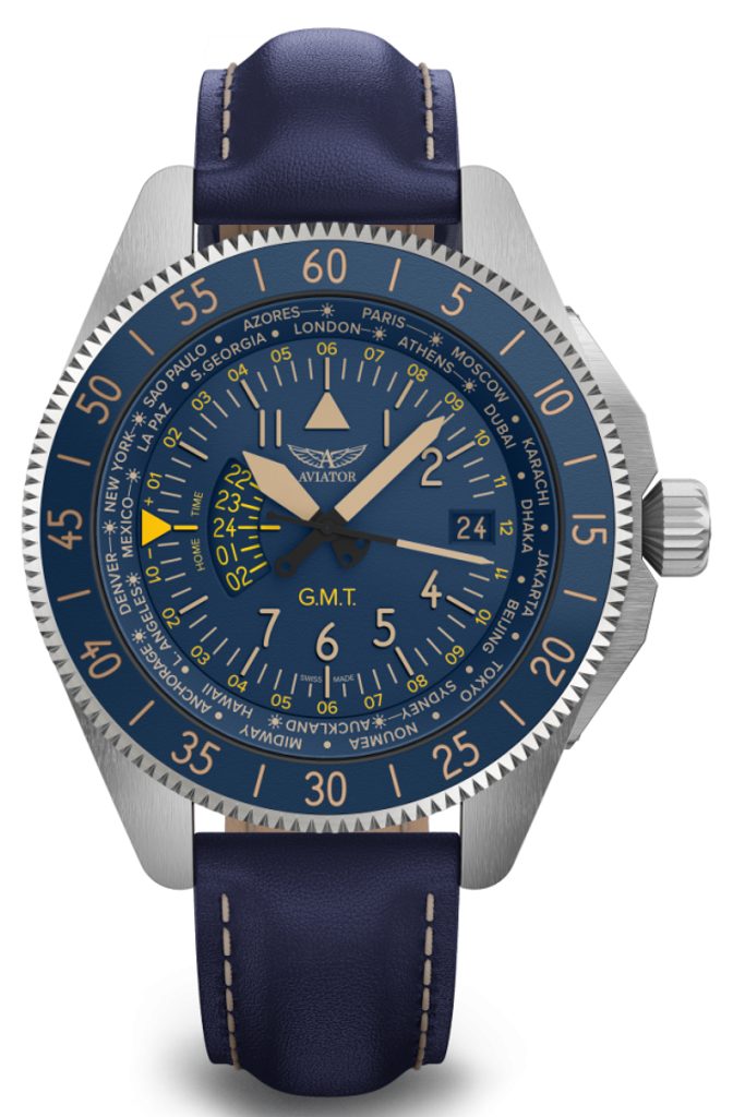 Airacobra Airacobra Men's steel watches Men's Swiss watch Men's Watches Men's Quartz watches Men's silver watches Men's watches with date Watches Airacobra GMT Airacobra GMT Aviator Men's pilot's watches Men's watches over 400 EUR Men's watches with GMT (second time zone) Men's blue watches Men's watches with leather strap Men's watches with sapphire crystal Men's Watches Aviator