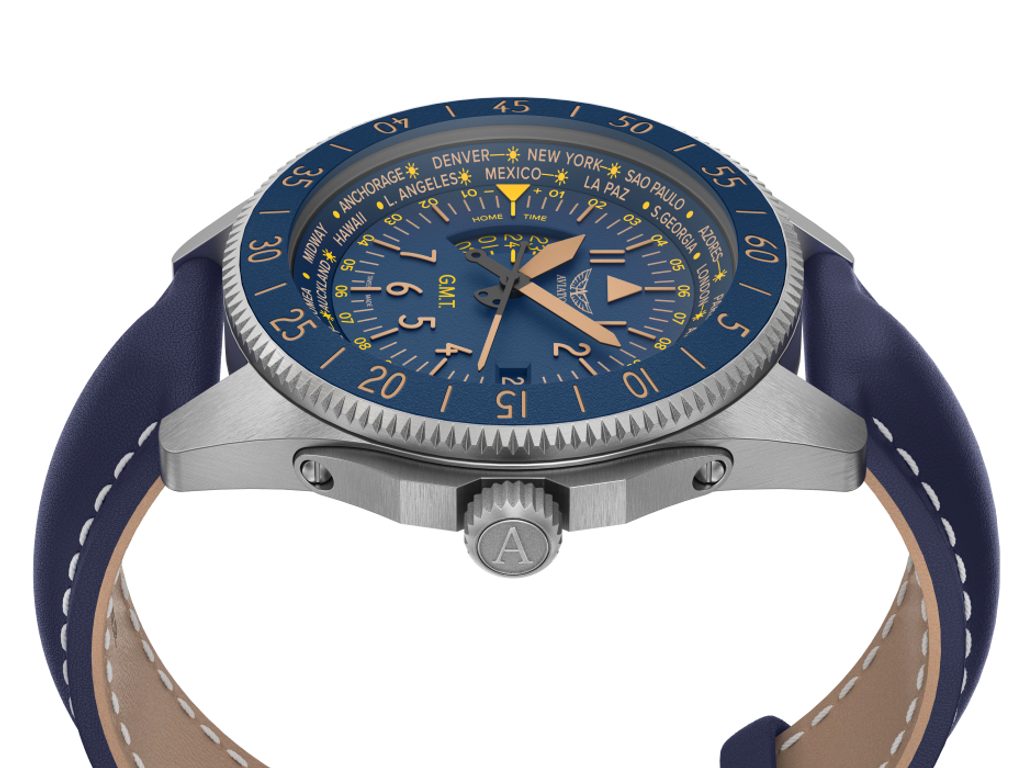 Designing each unique pilot's watch at the research and development facility inside the control tower of the regional airport in Jura, Switzerland, the staff looked to the heroes of the past, the dreamers of today and the innovators of tomorrow to organically combine the spirit of aviation in function and design. Aviator not only takes inspiration from the past, but works closely with professional pilots to design each watch to achieve flawless functionality in real-world flying conditions.