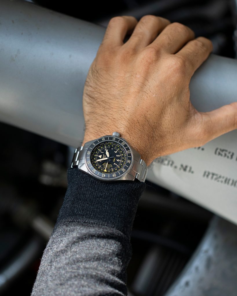 Designing each unique pilot's watch at the research and development facility inside the control tower of the regional airport in Jura, Switzerland, the staff looked to the heroes of the past, the dreamers of today and the innovators of tomorrow to organically combine the spirit of aviation in function and design. Aviator not only takes inspiration from the past, but works closely with professional pilots to design each watch to achieve flawless functionality in real-world flying conditions.