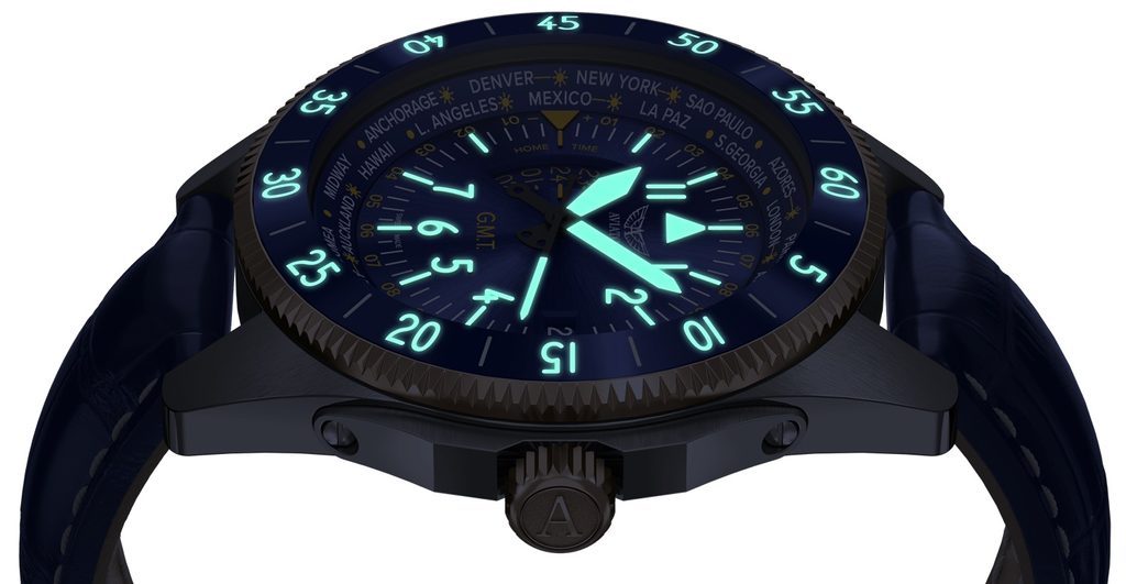 Designing each unique pilot's watch at the research and development facility inside the control tower of the regional airport in Jura, Switzerland, the staff looked to the heroes of the past, the dreamers of today and the innovators of tomorrow to organically combine the spirit of aviation in function and design. Aviator not only takes inspiration from the past, but works closely with professional pilots to design each watch to achieve flawless functionality in real-world flying conditions.