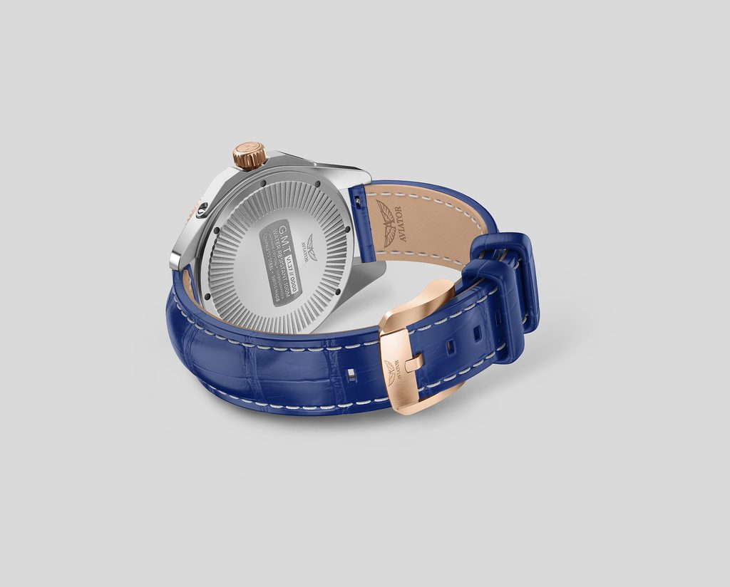 With a case diameter of 42.8 mm, the Aviator Airacobra GMT V.1.37.3.308.4 fits most men's wrists. Water resistance of 10 ATM indicates that this watch is a great companion not only in the air, but also during swimming in the water.