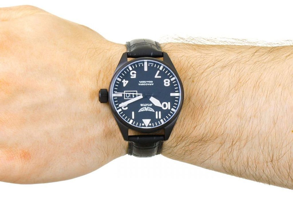 With a case diameter of 42 mm, the Aviator Airacobra P 42 V.1.22.5.148.4 fits most men's wrists. Water resistance of 10 ATM indicates that this watch is a great companion not only in the air, but also during swimming in the water.