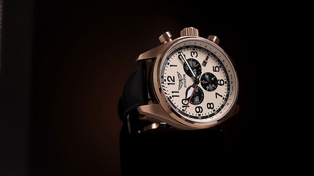 Designing each unique pilot's watch at the research and development facility inside the control tower of the regional airport in Jura, Switzerland, the staff looked to the heroes of the past, the dreamers of today and the innovators of tomorrow to organically combine the spirit of aviation in function and design. Aviator not only takes inspiration from the past, but works closely with professional pilots to design each watch to achieve flawless functionality in real-world flying conditions.