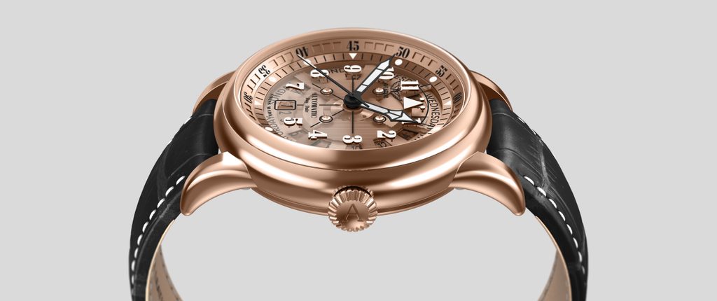 Designing each unique pilot's watch at the research and development facility inside the control tower of the regional airport in Jura, Switzerland, the staff looked to the heroes of the past, the dreamers of today and the innovators of tomorrow to organically combine the spirit of aviation in function and design. Aviator not only takes inspiration from the past, but works closely with professional pilots to design each watch to achieve flawless functionality in real-world flying conditions.