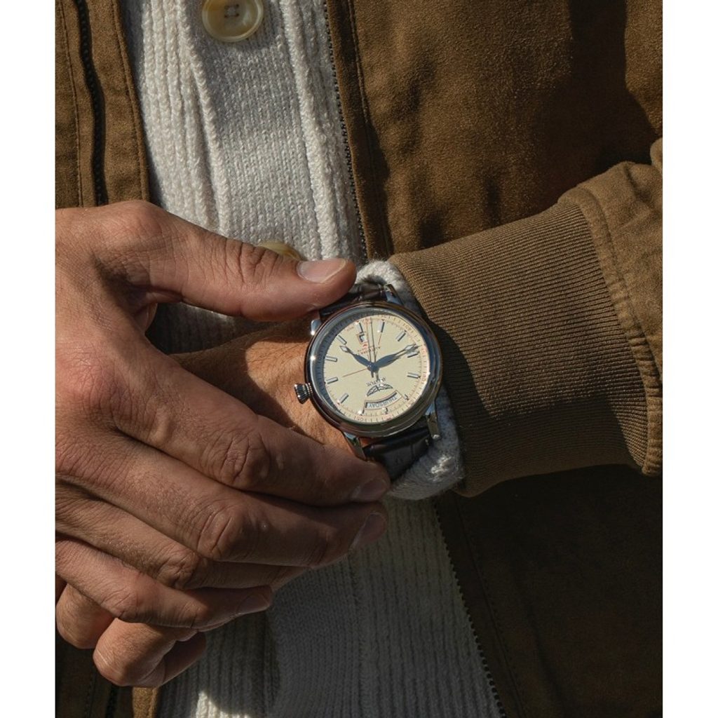 Designing each unique pilot's watch at the research and development facility inside the control tower of the regional airport in Jura, Switzerland, the staff looked to the heroes of the past, the dreamers of today and the innovators of tomorrow to organically combine the spirit of aviation in function and design. Aviator not only takes inspiration from the past, but works closely with professional pilots to design each watch to achieve flawless functionality in real-world flying conditions.