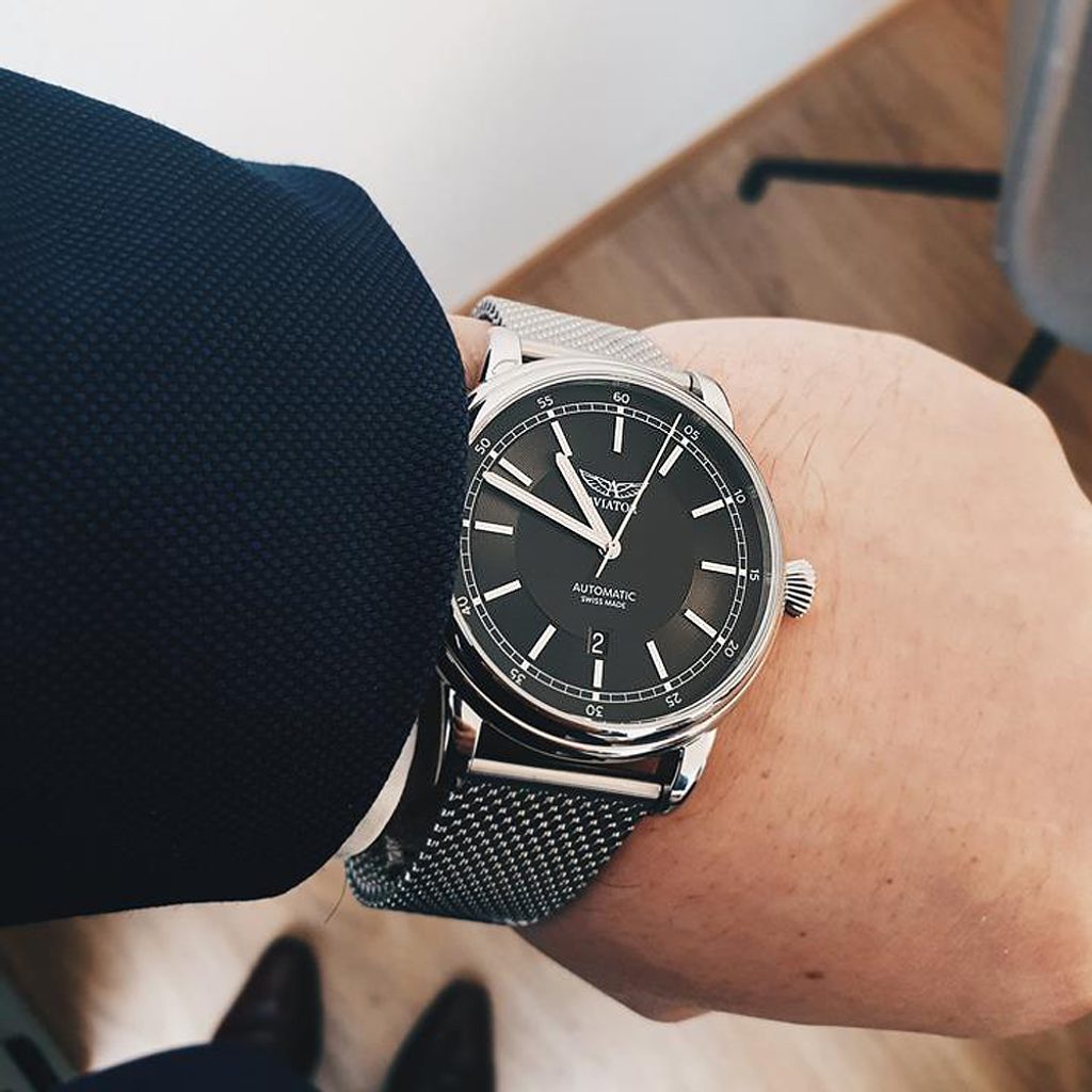 Designing each unique pilot's watch at the research and development facility inside the control tower of the regional airport in Jura, Switzerland, the staff looked to the heroes of the past, the dreamers of today and the innovators of tomorrow to organically combine the spirit of aviation in function and design. Aviator not only takes inspiration from the past, but works closely with professional pilots to design each watch to achieve flawless functionality in real-world flying conditions.