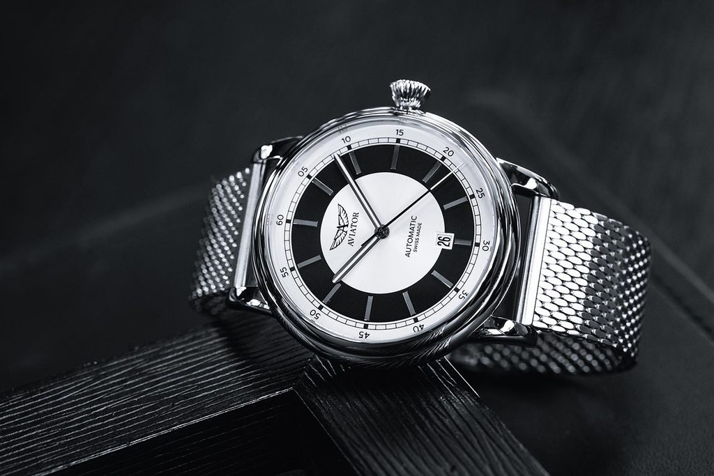 Designing each unique pilot's watch at the research and development facility inside the control tower of the regional airport in Jura, Switzerland, the staff looked to the heroes of the past, the dreamers of today and the innovators of tomorrow to organically combine the spirit of aviation in function and design. Aviator not only takes inspiration from the past, but works closely with professional pilots to design each watch to achieve flawless functionality in real-world flying conditions.