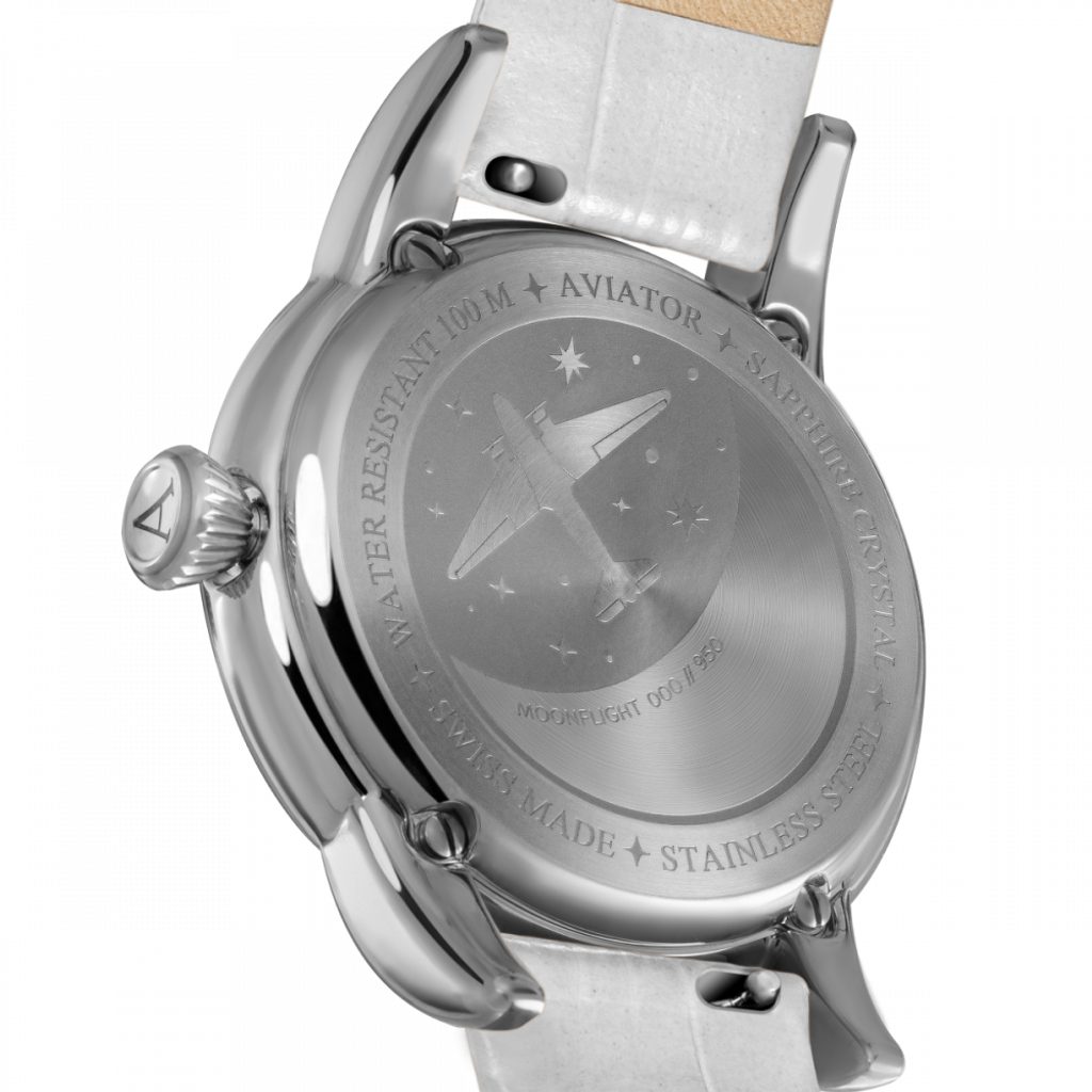 With a case diameter of 36 mm, the Aviator Douglas Moonflight V.1.33.0.250.4 fits most women's wrists. Water resistance of 10 ATM indicates that the watch will be a great companion not only in the air, but also when swimming in the water.