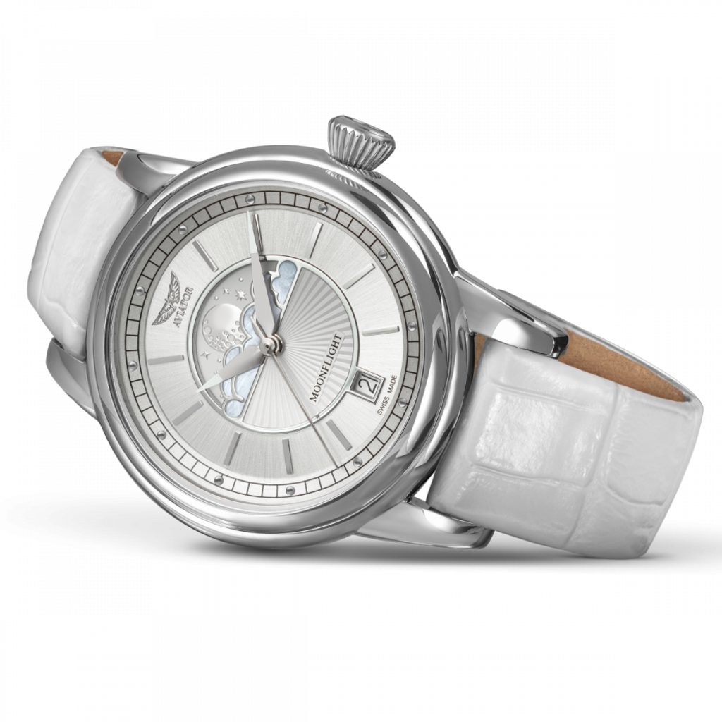 No one doubts the influence of the moon on our earth and all life on it anymore. It influences our sleep and our thinking, or the rise and fall of the oceans and seas. During the 8 phases that the moon goes through every 29.5 days, the intensity of its power changes. The Aviator Moonflightwomen's watch is designed so that you can track these phases at any time by looking at your watch.