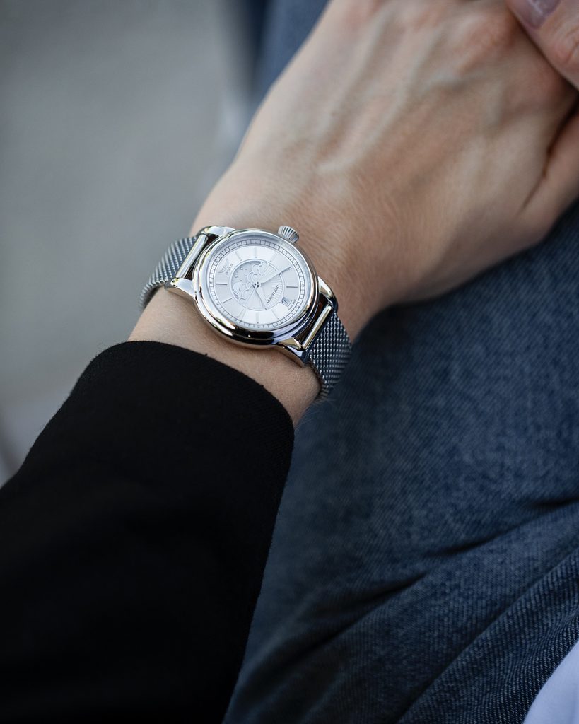 At the heart of this watch is a reliable Swiss-made Ronda 708 quartz movement. It features a moon phase complication that is accentuated by an elaborate finish, metallization and polishing. This complication, working with absolute precision day after day, allows you to be in exact alignment with the many phases of the moon throughout the month.