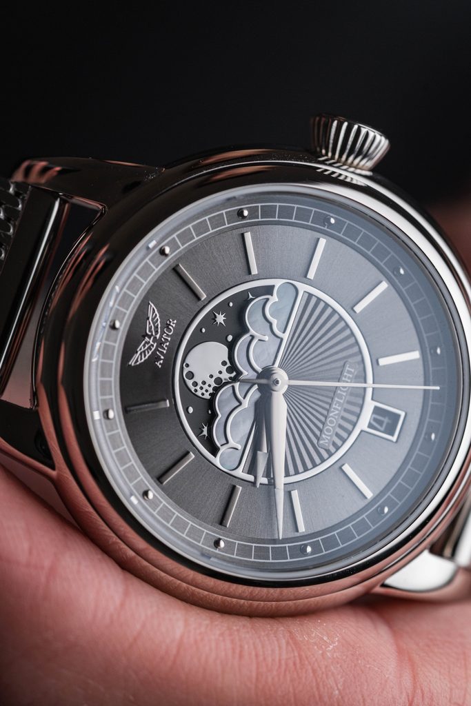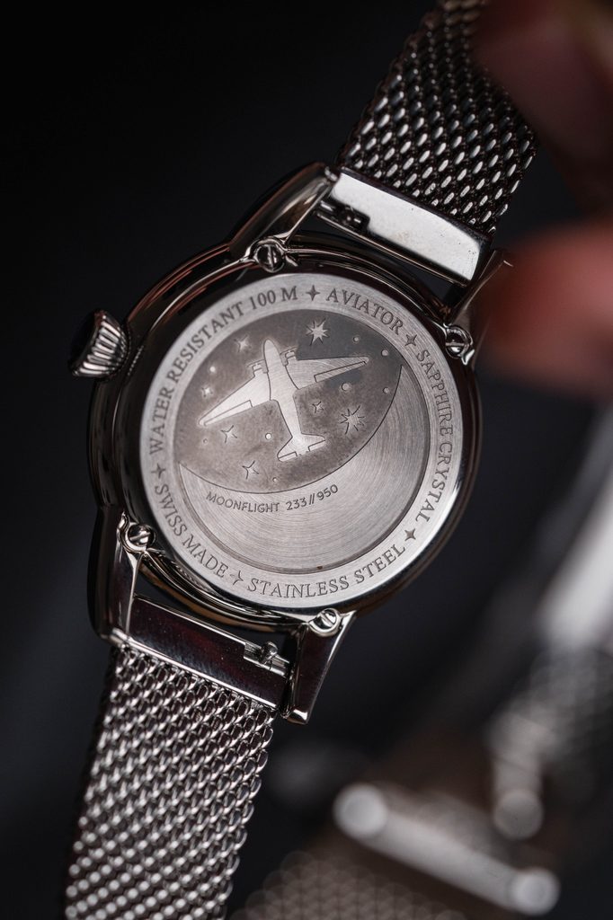 Designing each unique pilot's watch at the research and development facility inside the control tower of the regional airport in Jura, Switzerland, the staff looked to the heroes of the past, the dreamers of today and the innovators of tomorrow to organically combine the spirit of aviation in function and design. Aviator not only takes inspiration from the past, but works closely with professional pilots to design each watch to achieve flawless functionality in real-world flying conditions.