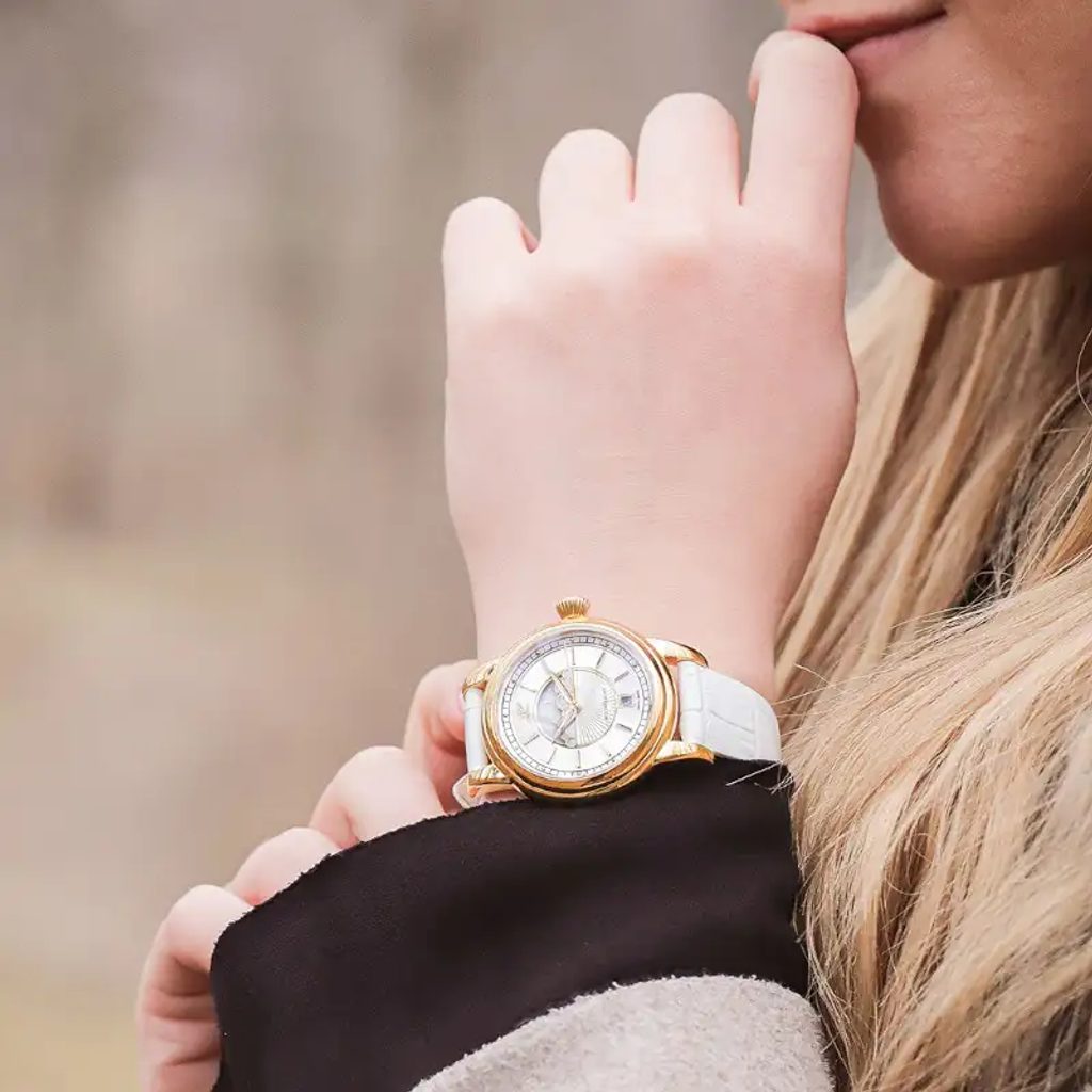 At the heart of this watch is a reliable Swiss-made Ronda 708 quartz movement. It features a moon phase complication that is accentuated by an elaborate finish, metallization and polishing. This complication, working with absolute precision day after day, allows you to be in exact alignment with the many phases of the moon throughout the month.