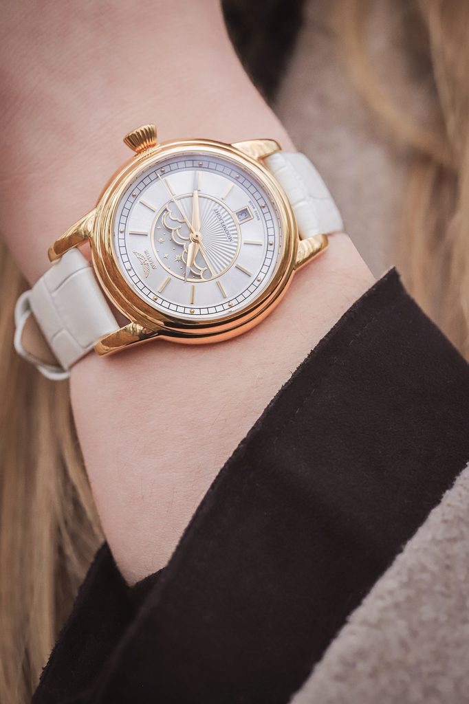 No one doubts the influence of the moon on our earth and all life on it anymore. It influences our sleep and our thinking, or the rise and fall of the oceans and seas. During the 8 phases that the moon goes through every 29.5 days, the intensity of its power changes. The Aviator Moonflightwomen's watch is designed so that you can track these phases at any time by looking at your watch.