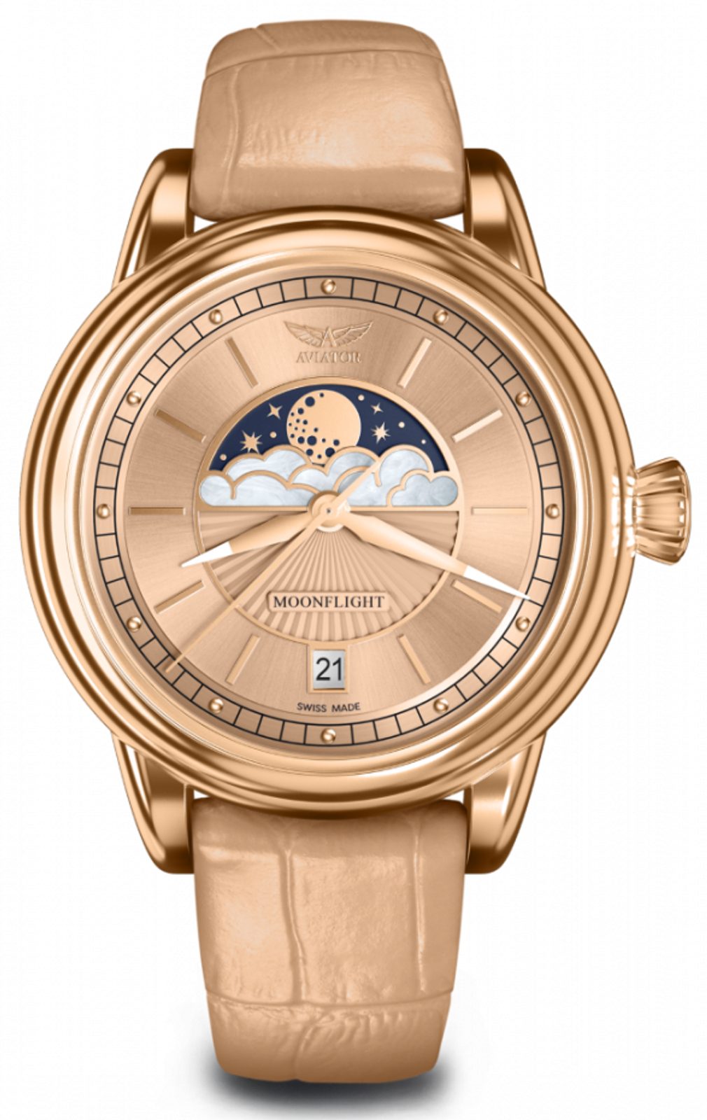 With a case diameter of 36 mm, the Aviator Douglas Moonflight V.1.33.2.260.4 fits most women's wrists. Water resistance of 10 ATM indicates that the watch will be a great companion not only in the air, but also when swimming in the water.