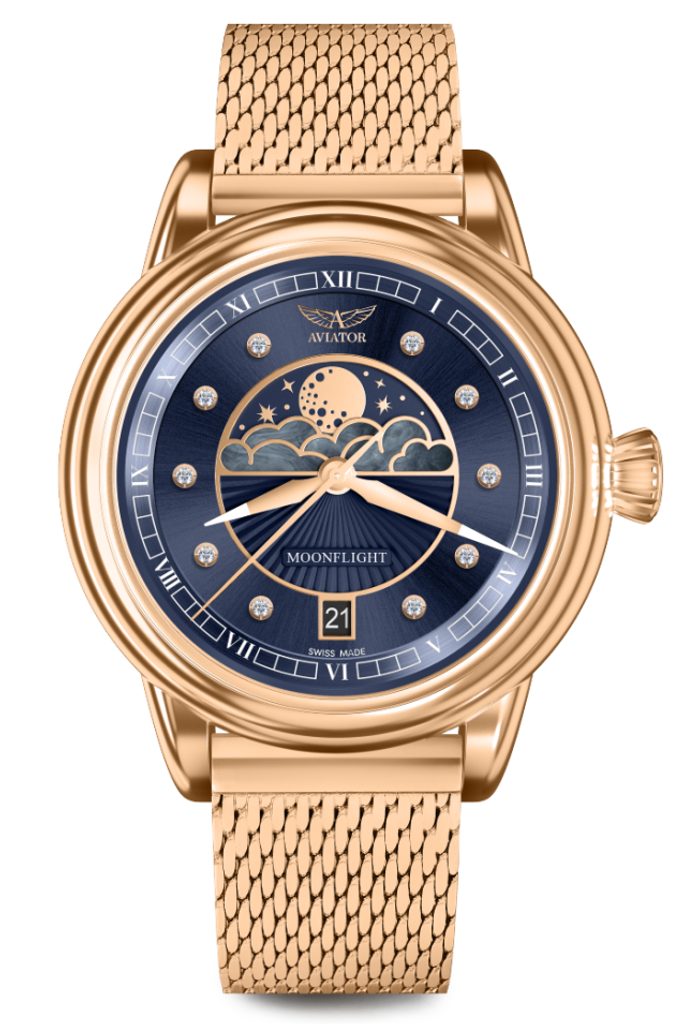 No one doubts the influence of the moon on our Earth and all life on it anymore. It influences our sleep and our thinking, or the rise and fall of the oceans and seas. During the 8 phases that the Moon goes through every 29.5 days, the intensity of its power changes. The Aviator Moonflightwomen's watch is designed so that you can track these phases at any time by looking at your watch.