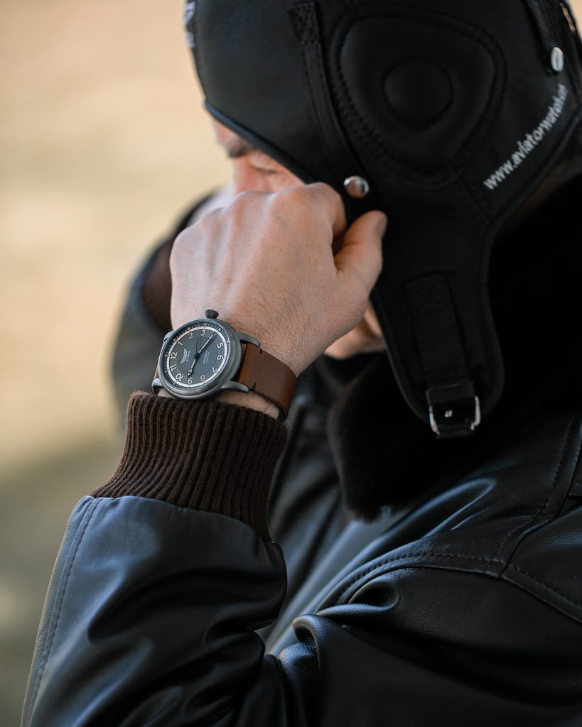 Designing each unique pilot's watch at the research and development facility inside the control tower of the regional airport in Jura, Switzerland, the staff looked to the heroes of the past, the dreamers of today and the innovators of tomorrow to organically combine the spirit of aviation in function and design. Aviator not only takes inspiration from the past, but works closely with professional pilots to design each watch to achieve flawless functionality in real-world flying conditions.