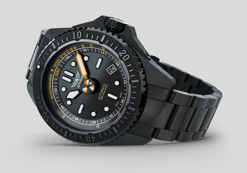 The Aviator XPRO DIVE BREATHER 300 AUTO was designed for those who navigate the clouds and the deep waters, redefining professional timekeeping. Designed for divers and pilots alike, this watch combines aviation precision with deep water durability. With water resistance to 300 meters, a quality Swiss-made movement with automatic winding and an easy-to-read dial, the watch delivers top performance whether you're soaring above the clouds or exploring the depths of the waters.