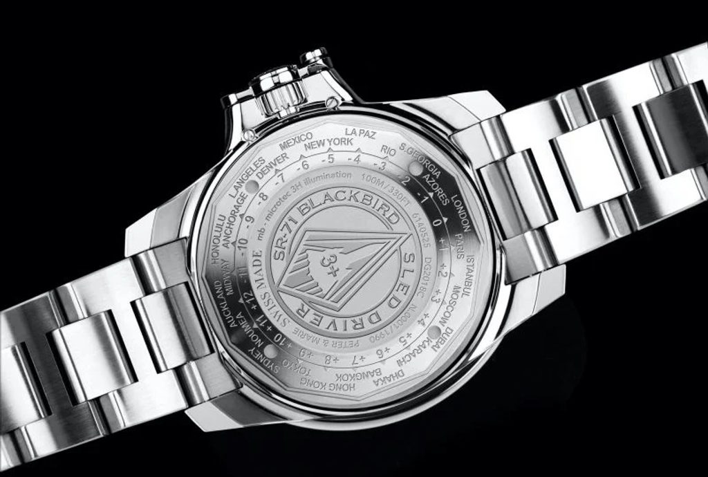 The watch is also impact-resistant to 7500 Gs, which corresponds to a fall of up to 1.5 metres without damaging the movement. To display the next time zone, a bidirectionally rotating sapphire GMT lunette is used, which is equipped with the brand's typical tritium luminescent H3 tubes. This ensures that it can be used seamlessly even in the dark.