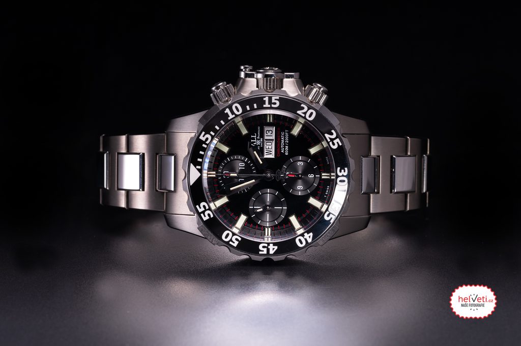 The perfectly clear dial is protected by a sapphire crystal that is maximally scratch-resistant. An anti-reflective coating provides excellent legibility even in direct sunlight. Readability in the dark is ensured by the H3 tritium luminescent tubes on the hands and indexes. These ensure reliable luminosity regardless of previous illumination, unlike the classic luminescent coating. The water resistance of this watch is 600m and is supported by a screw-down crown, a special patented crown guard and a patented helium valve integrated directly into the crown. Thanks to this, it can easily cope with deep diving to about 60-70 meters, for example.