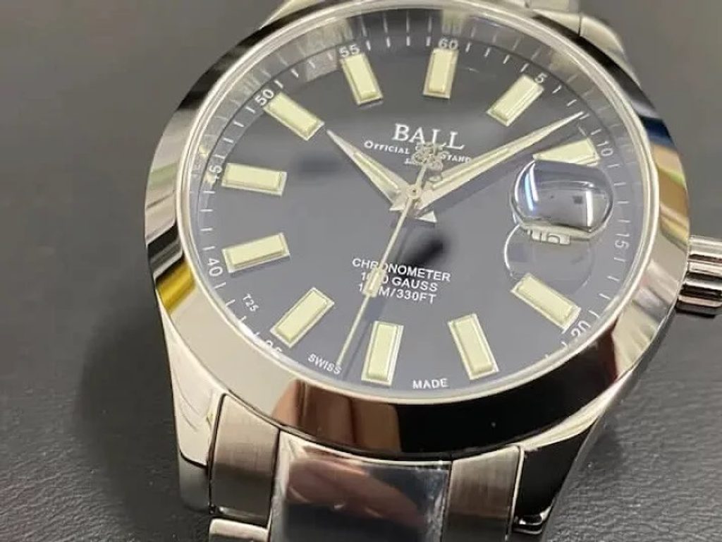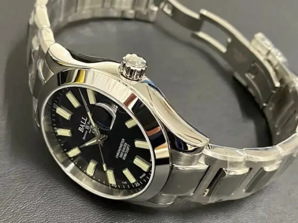 The case of the Ball NM9026C-S6CJ-BK watch, including the bracelet, is made of 904L stainless steel, which requires special processing techniques and guarantees increased resistance to corrosion and acids. Inside this case, the Swiss mechanical automatic movement Ball RR1103-C (based on the ETA 2824 or Sellita SW200) operates at a frequency of 28,800 semi-frequencies per hour and is COSC certified. As a result, it can carry the "Chronometer" designation and meets the most stringent requirements for running accuracy. At the traditional position 3 we find the date display, highlighted by a magnifying glass (the so-called cyclops).