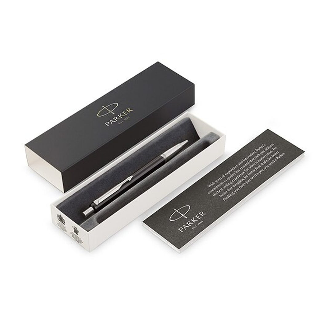 The pen has a black stainless steel barrel and, together with the stainless steel accessories, forms a perfectly matched unit with a modern but uncomplicated design. There is also a practical squeeze mechanism for ejecting the refill. With Parker's time-honoured craftsmanship and customer experience, the Vector is a writing instrument you can trust without fear.