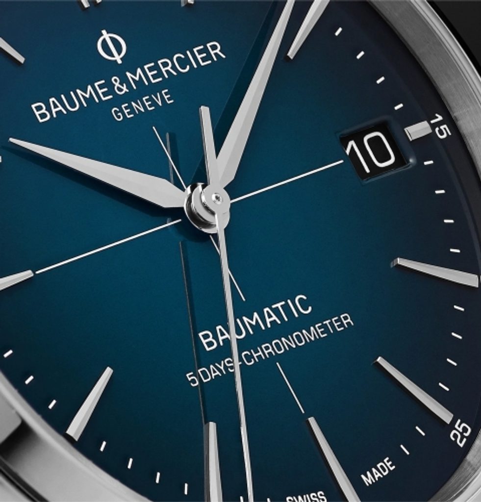 Among other achievements, the brand boasts its in-house Baumatic automatic movement, offering a power reserve of up to five days and chronometer-level accuracy.