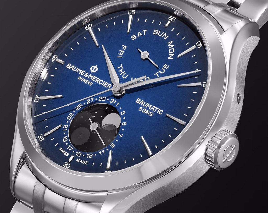 Among other achievements, the brand boasts its in-house Baumatic automatic movement, offering a power reserve of up to five days and chronometer-level accuracy.