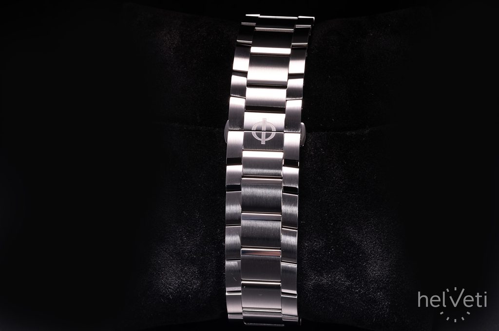 The steel case of the watch is complemented by a three-row steel bracelet finished with a butterfly clasp. The integrated bracelet promotes the sporty feel of the watch and is equipped with a quick-release system, making it easy to change without tools.