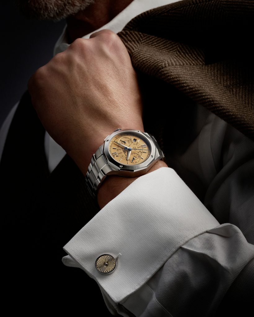 In addition to the movement used in the watch, the gilded dial with vertical cut also catches the eye, giving the watch a subtle vintage touch. This is also supported by the use of three scales on the dial - telemetric, tachymetric and minute.