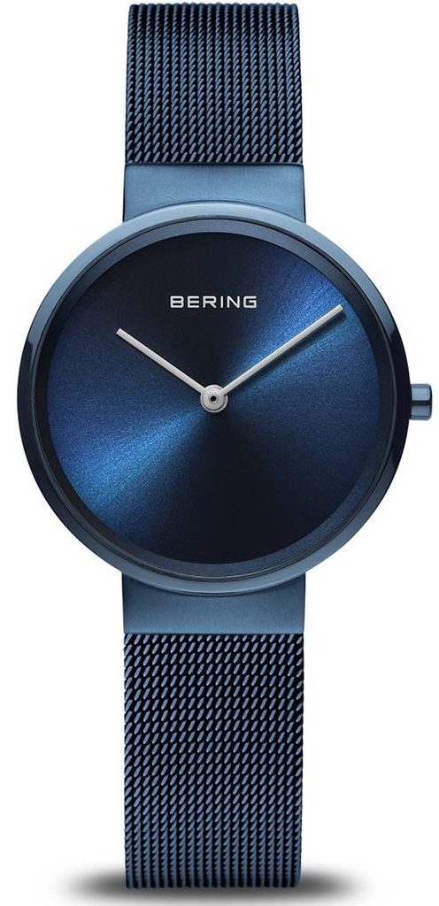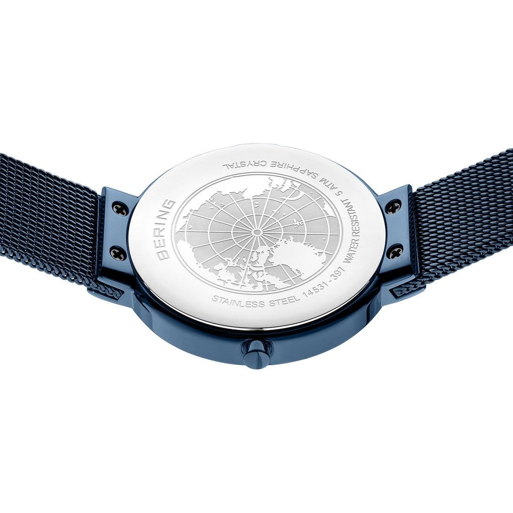 The Bering Classic 14531-397 women's steel watch is an elegant and stylish timepiece that impresses with the clean design of its distinctive blue dial. The watch stays on the wrist thanks to the braided Milanese stainless steel bracelet, the size of which can be very easily adjusted at home. The case and bracelet have a PVD finish in blue.