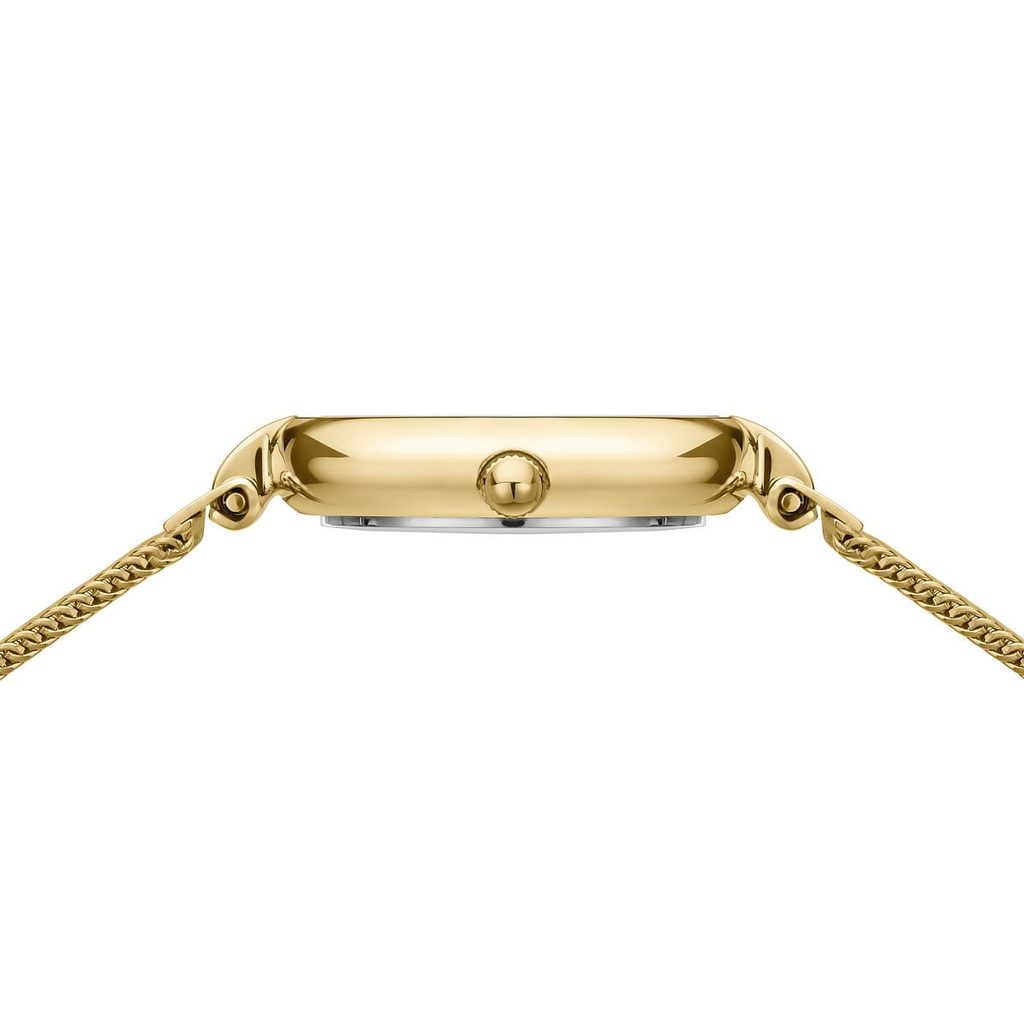 The 24 mm case is made of stainless steel, as is the MESH strap - both with a gold PVD finish. A reliable quartz movement works inside the case.