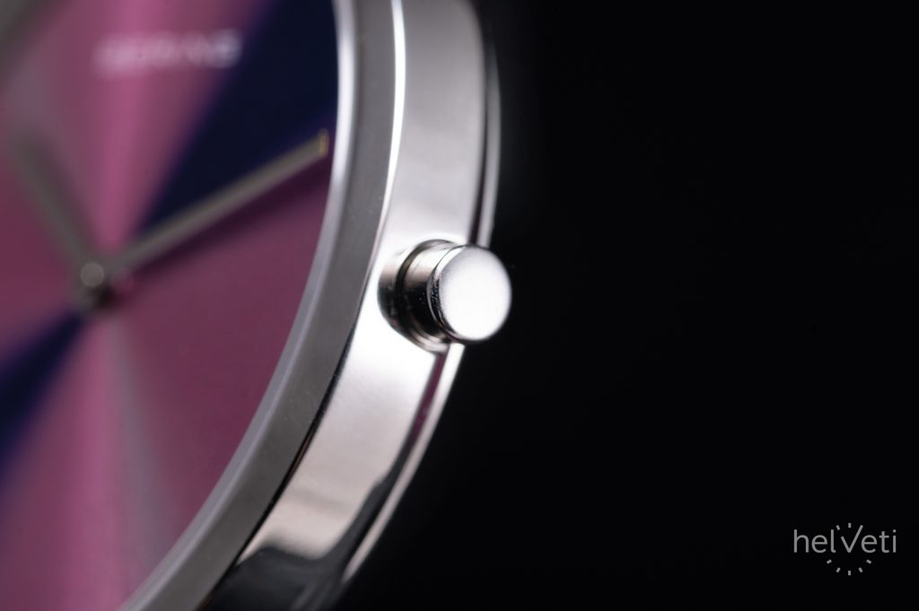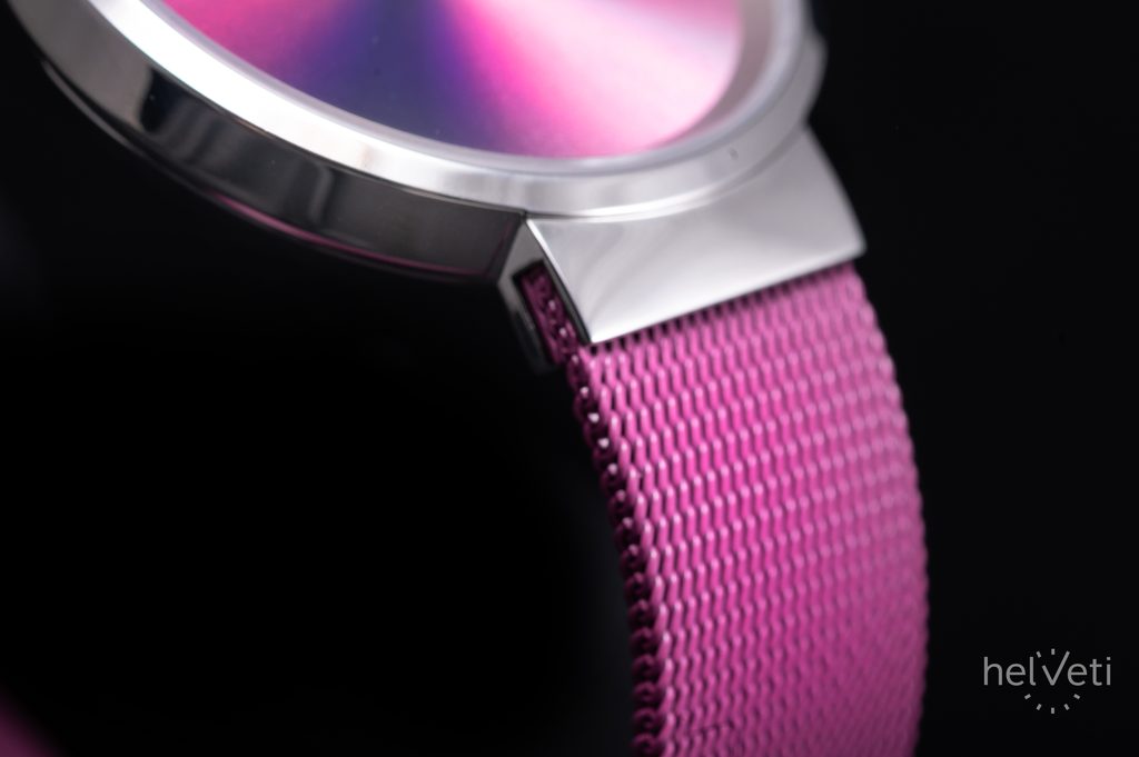 The unusual combination of colours, the steel bracelet with a subtle purple PVD finish, the silver case and the fascinating coloured dial make this watch a very interesting piece of jewellery that will make you look great whether you are going out socially or just out for a drink with your girlfriends.