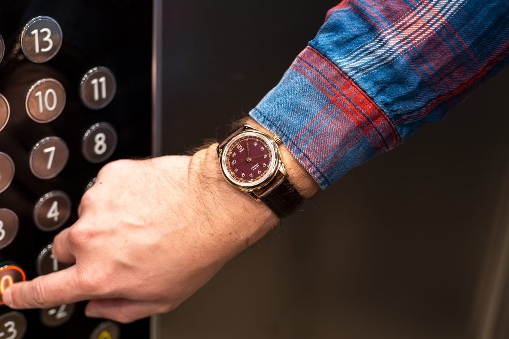 The dark burgundy dial with sunburst effect is perfectly complemented by applied indexes in a polished finish and polished hands, both in rose gold. Of course, the sapphire crystal is extremely scratch-resistant. Good legibility in sharp light is ensured by an internal anti-reflective layer. The water resistance of this watch is 50 m ( 5 ATM), so it can also handle contact with water, such as a shower or rain. On the wrist, the watch is held by an alligator leather strap.