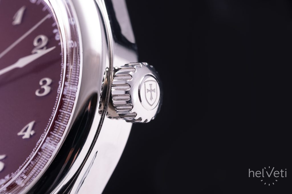 The watch case is made of polished stainless steel and its diameter is a pleasant 38 mm, the length (lug-to-lug) is 46 mm, so the watch fits well on most wrists. The large crown with the Biatec logo allows comfortable operation of the hands.