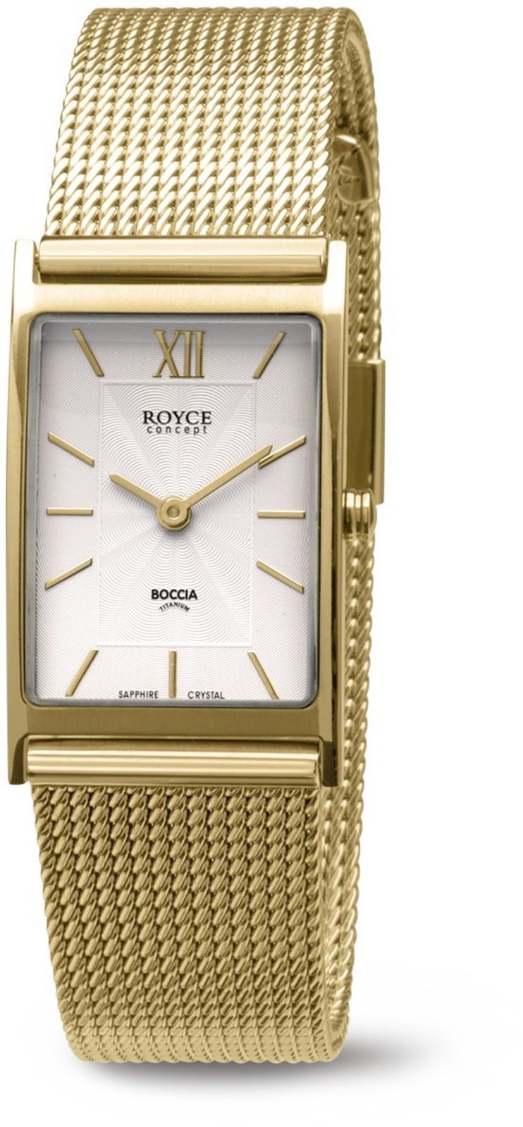 New for 2020 the Boccia Titanium watch is exactly what is not to be missed on a woman's wrist. A watch that can be used for both social and casual wear or work. It has a water resistance of up to 50m, which is enough for hand washing, showering and rain. The titanium design makes the watch very lightweight and you will hardly feel it on your wrist. Titanium is also suitable for allergy sufferers who do not tolerate well the substances contained in steel. The case size of 22 mm makes it a medium-sized, ladies' watch. Both the case and the braided steel bracelet are finished in a PVD gold colour finish.