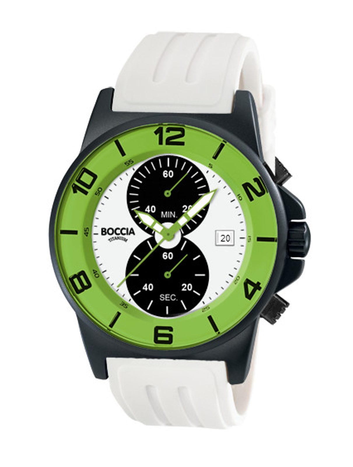 Limited edition exclusively for the Czech Republic! Only 20 of these watches were produced and in cooperation with Boccia they are exclusively sold only in the Czech Republic. The whole model series with the Boccia Titanium 3777 is new for 2014! It is a unisex (men's and women's) watch on a very practical rubber strap. For an unbeatable price you get a watch with a titanium case, stopwatch and water resistance of 10 atmospheres. There are 4 colour combinations available. You can buy a black rubber strap to give the watch a different look.