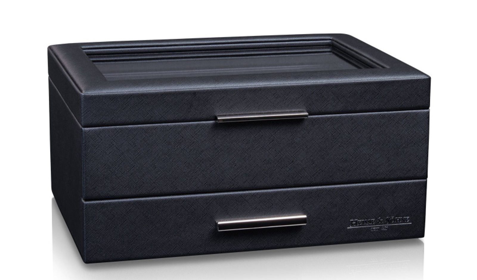 The Heisse & Söhne Heron 10+ 70019-190.142 watch and jewellery box is extremely elegant and practical for storing jewellery and watches. The box is covered in high-quality, robust imitation leather with a Saffiano look. The interior is lined with soft, high-quality imitation leather to keep watches and accessories safe.