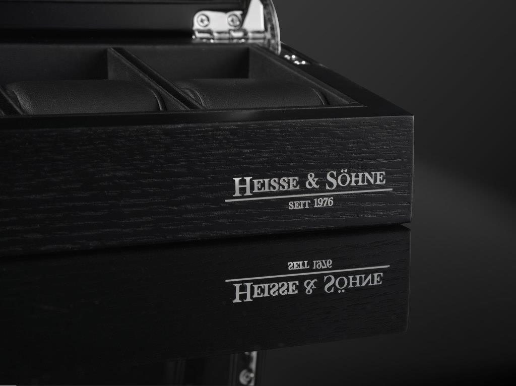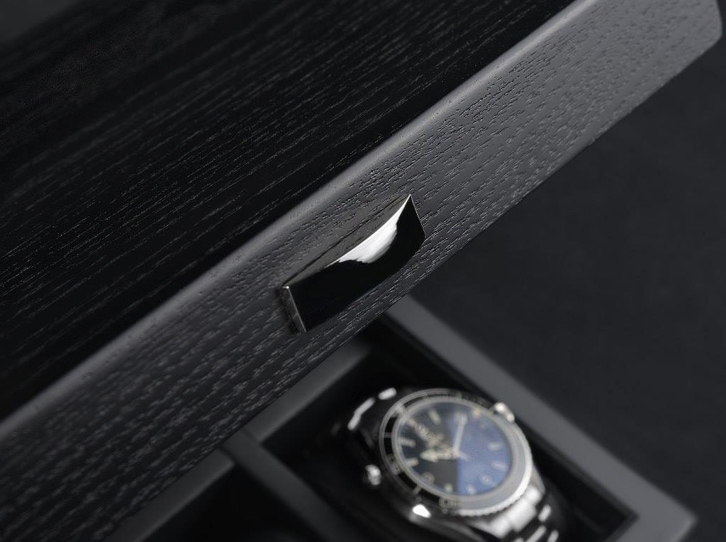 The satin finish ash with open pores exudes timeless elegance. The deep black lining made of robust imitation leather ensures an extremely stylish presentation of the watches. The soft pads with a width of 50 mm ensure that even very large watch cases can be safely stored.