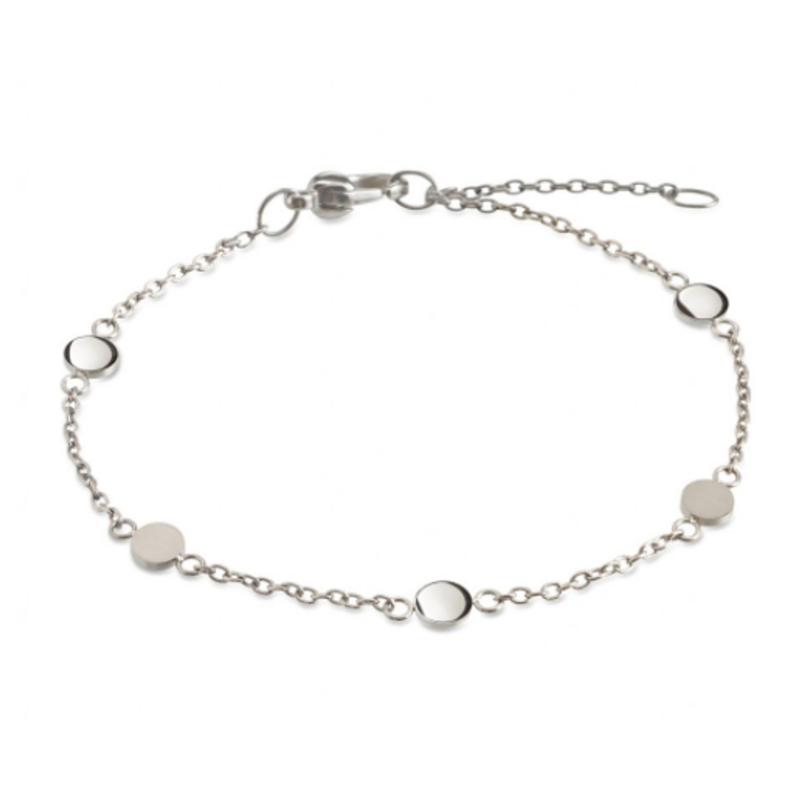 A piece of jewellery that is designed for lovers of uniqueness. The delicate chain bracelet in titanium is complemented by five pendants in the shape of flats on which alternate matte and polished finish. The result is a truly eye-catching piece of jewellery. Because the bracelet is made of titanium, it is also beautifully light, strong and durable. It is also hypoallergenic, which will be especially appreciated by people with a heightened sensitivity to metals.