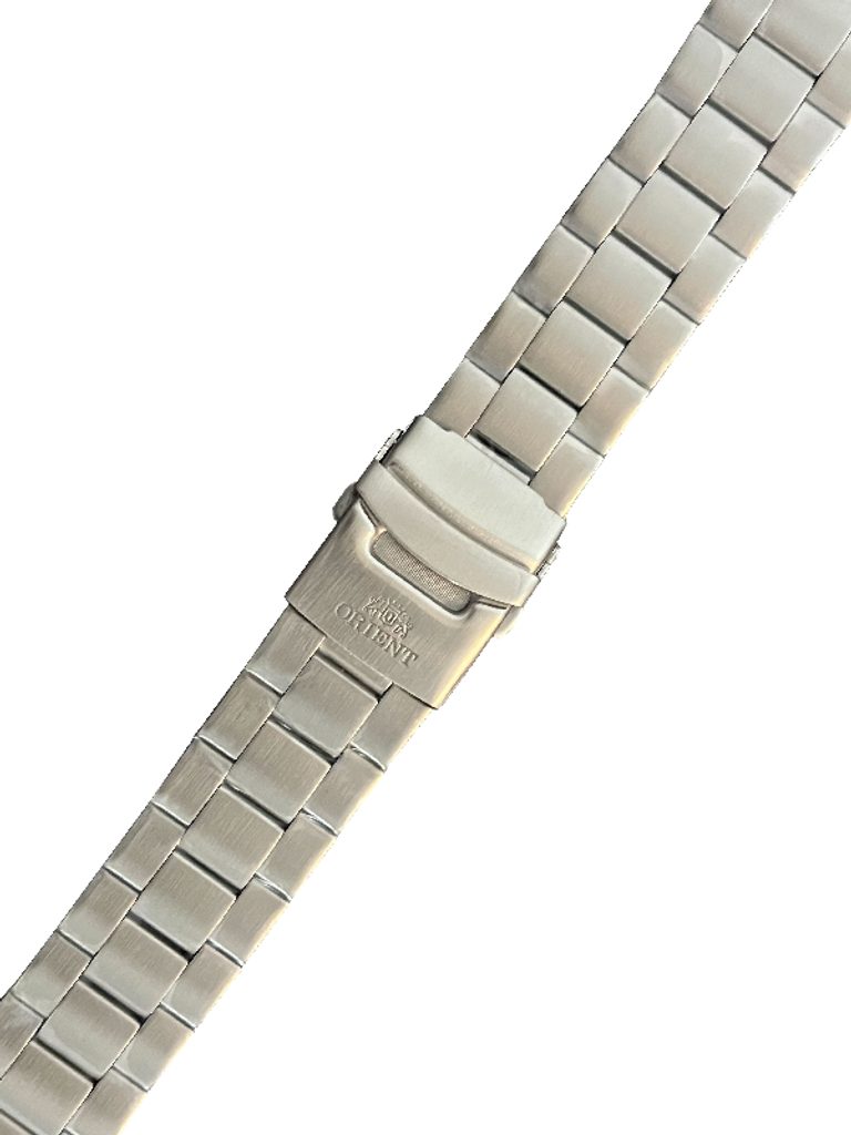 The original 22 m wide Orient steel bracelet boasts a practical steel-coloured folding clasp and low maintenance. Its shiny finish also adds a touch of elegance to your watch.