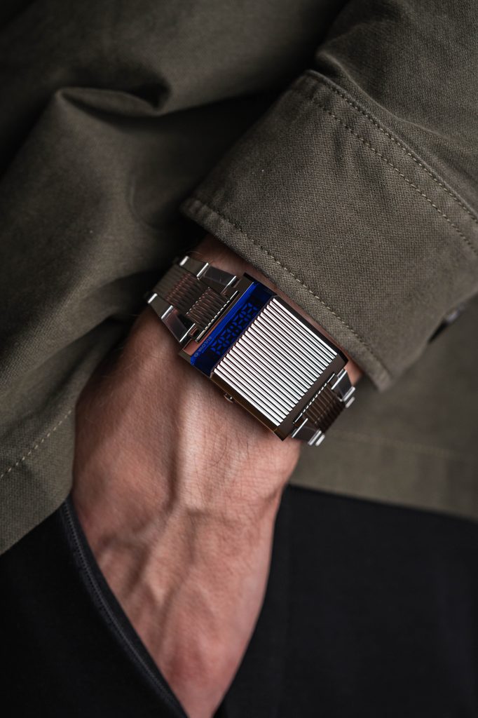 The Archive Series, aiming to commemorate the iconic Bulova models that have made history with their designs, use, etc., after the highly successful Bulova Lunar Pilot and Devil Diver, comes a digital watch that must have caused quite a stir in its time and whose design does not go unnoticed even today. The Bulova Computron 96C13 is reminiscent of today's highly collectible Bulova Computron Pro Driver. The new model, like its predecessor, features a trapezoidal case with a slim display placed at one of its ends just so that the time can be easily read while driving without having to turn the wrist. The new Bulova Computron models, like their 1970s predecessor, bear the brand's name and the crystal, the symbol of quartz watches, on the lower right of the dial.