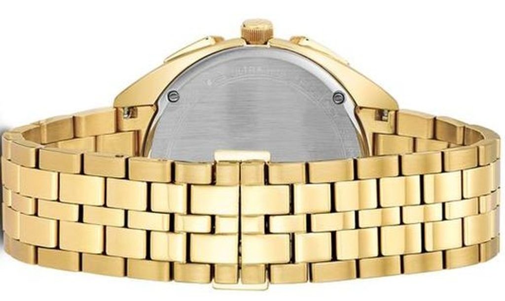 The case of the Bulova Curv Classic Chronograph 97A125 is made of stainless steel with a gold-coloured PVD finish and, thanks to its curved shape, fits perfectly on the wrist, ensuring perfect comfort. Inside we find a high-performance quartz UHF (Ultra High Frequency) movement, operating at 262 kHz. This is roughly 8 times higher than conventional quartz movements (32768 Hz). This makes it possible to achieve extreme running accuracy with a deviation of approximately 10s per year! This movement also offers a stopwatch function.